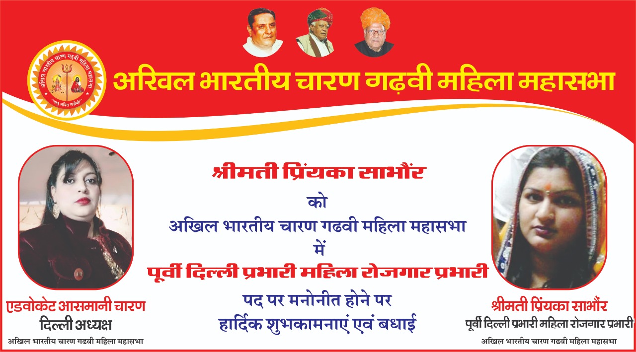 તાજેતર મા અખિલ ભારતીય ચારણ-ગઢવી મહાસભા (યુવા) ની વરણી થયેલ તેમાં આપ શ્રી ની *અમરેલી જીલ્લા મંત્રી* તરીકે વરણી થવા બદલ ખુબ ખૂબ અભિનંદન અને શુભેચ્છાઓ 💐💐💐